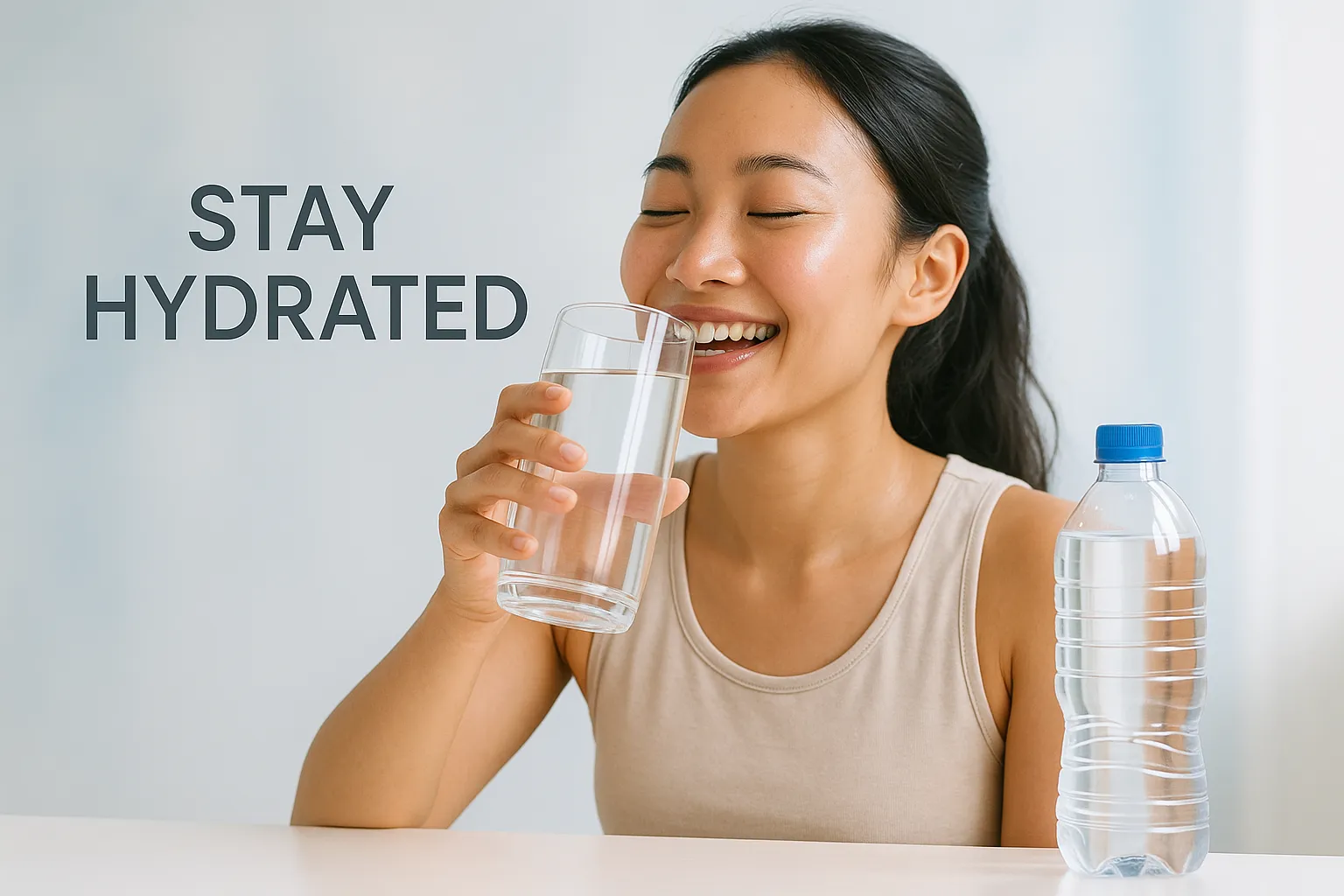 - รักษาความชุ่มชื้น: น้ำเป็นส่วนประกอบหลักของเซลล์ผิว ช่วยให้ผิวมีความยืดหยุ่น อิ่มฟู และดูเรียบเนียน เมื่อร่างกายขาดน้ำ ผิวจะเป็นสิ่งแรกๆ ที่แสดงอาการออกมา คือจะดูแห้งกร้าน เหี่ยว และขาดความสดใส
